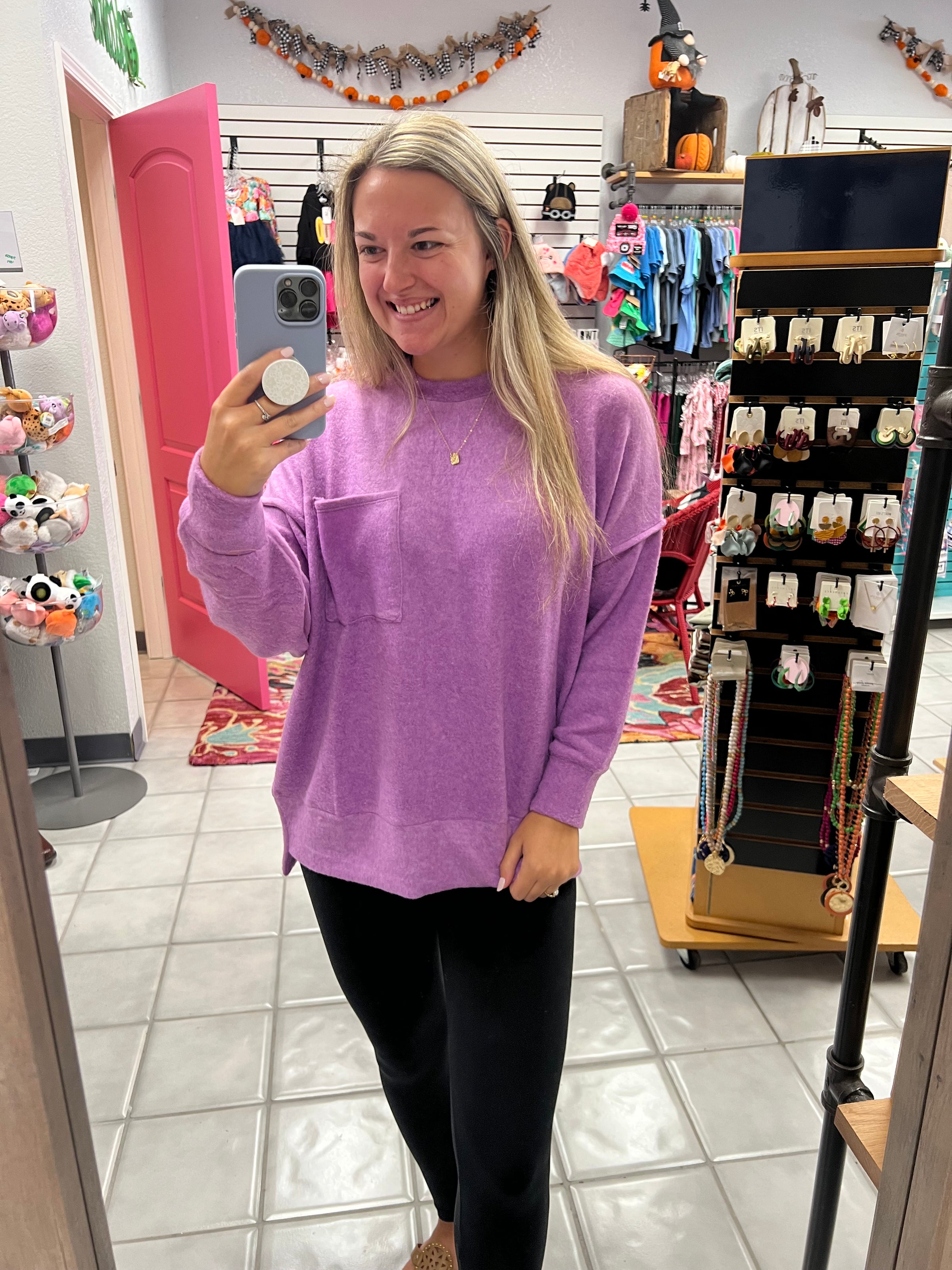 a brushed melange drop shoulder oversized sweater.